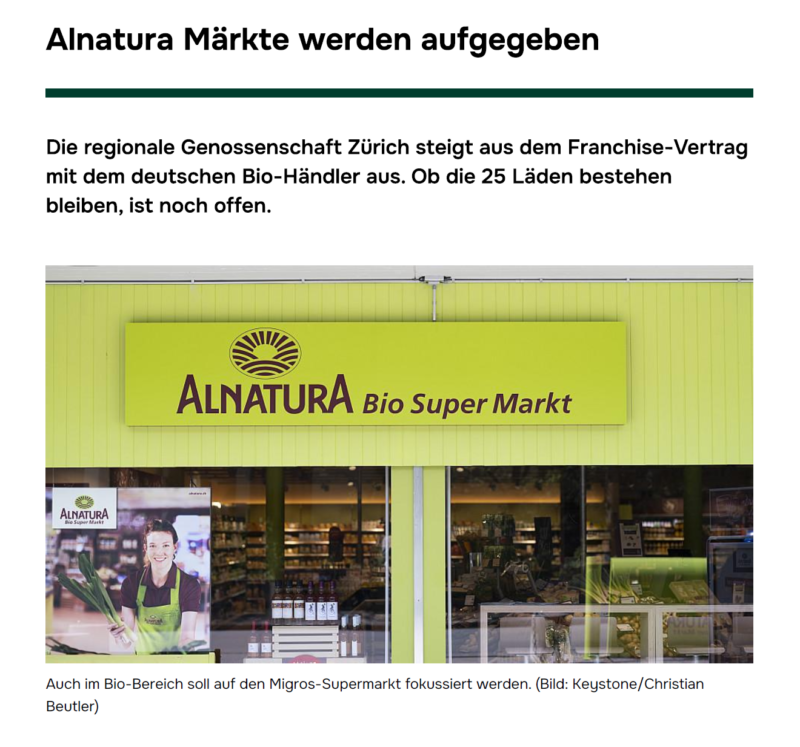 Alnatura Schweiz bedient sich einer deutschen Billigmarke. Dass sie mit ihren hochpreisigen Bioangeboten nicht alle Kundinnen erreichen, wissen auch die Grossverteiler Coop und Migros – und beginnen nun, preisgünstigere Bioprodukte anzubieten. Solche, die nicht mit der Knospe versehen sind und nicht immer aus der Schweiz stammen.